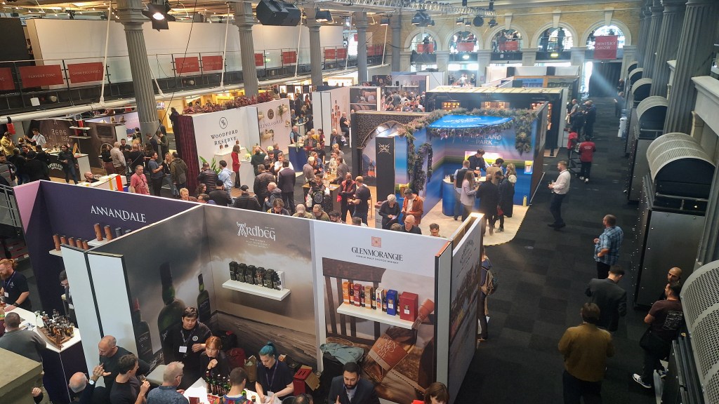 Once you’re inside wide avenues amid giant stands will greet you. There’s been some serious investment in recent years in experiential marketing by brands of all sizes. As a result this show is no longer just the largest gathering of roller banners or printed walls, it’s the Disneyland of whisky it’s supposed to be with each brand trying to carve out their own style to get your attention. There’s over 100 stands to visit spread out across two floors. Bigger brands generally have the lion’s share of space downstairs and upstairs is a long hallway of smaller stands lit with yellowish bulbs to give it the same vibe as many a whisky bar. Old Billingsgate really is the right venue for a show of this size. It’s well lit and not stuffy. Even with a sold out audience it didn’t get too hot or too loud to hear. Bonus points for its good accessibility too. Crowds will form around chokepoints and popular stands, but it’s rarely too much, and I didn’t get bumped or jostled over my two days. The highball bar represented a pleasant breakout area too with friendly staff pouring little cocktails. I had the sweet option of Johnnie Walker Ruby with raspberry and rose lemonade and was impressed by how well the flavours worked. I’ll likely be experimenting with my sherry bombs and rose flavoured mixers at home soon.