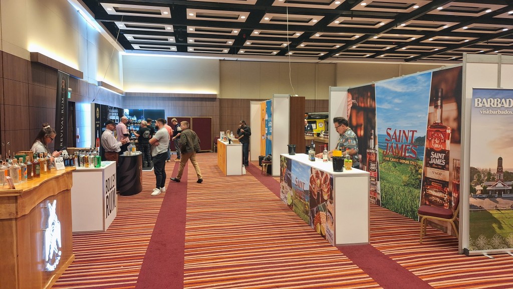 Despite the retro aesthetics the show floor is a pleasant space to spend an afternoon and it filled up towards the end. The stands are well spread out along wide avenues and whilst there’s music often playing it’s not too loud unless you’re next to the main stage speakers. Being a major multi-day show the brands are able to bring their stands and set up their spaces with as much or little flair as they like. On top of just sips of rum there were cocktails, mixers, snacks and more. Some folks we know prefer shows where brands can’t splash out on marketing, but all good spirits shows are designed for them to build their brands and meet customers like you. The show also had direct sales which means brands were able to offer special deals on their rums direct to consumers which we’re a huge fan of.